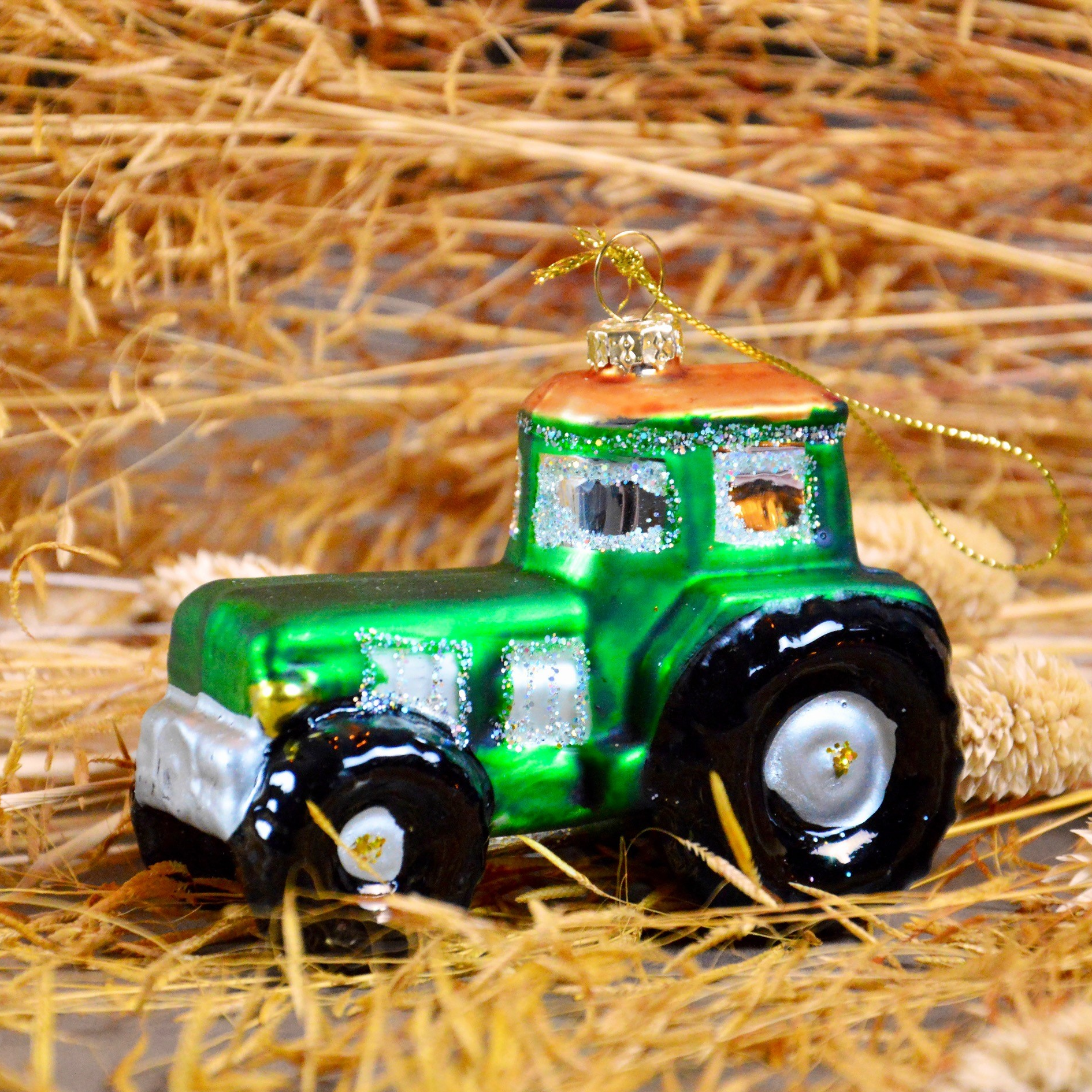 Voeg een landelijk tintje toe aan je kerstboom met ons glazen ornament van een groene tractor. Een charmante en rustieke toevoeging aan je feestelijke decoratie!
